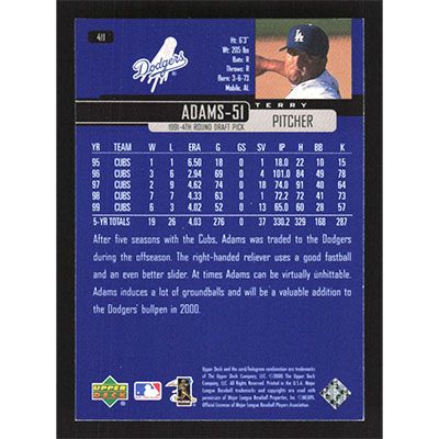 This is a 2000 Upper Deck Terry Adams baseball card. The card is #411 and pictures show condition.