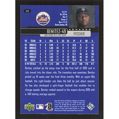 This is a 2000 Upper Deck Armando Benitez baseball card. The card is #440 and pictures show condition.