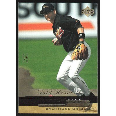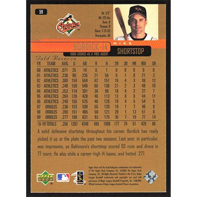 This is a 2000 Upper Deck Gold Reserve Mike Bordick baseball card. The card is #59 and pictures show condition.