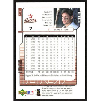 This is a 2000 Upper Deck MVP Craig Biggio baseball card. The card is #11 and pictures show condition.