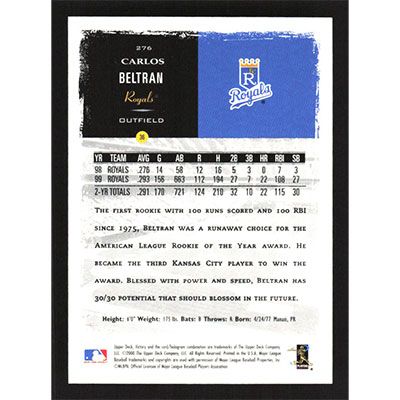 This is a 2000 Upper Deck Victory Carlos Beltran baseball card. The card is #276 and pictures show condition.