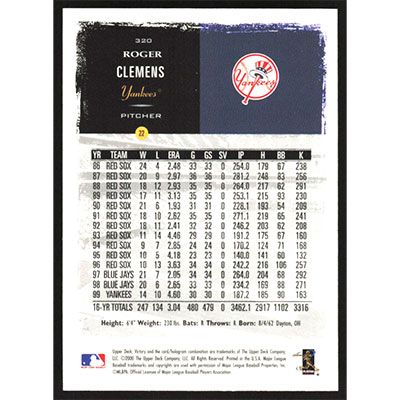 This is a 2000 Upper Deck Victory Roger Clemens baseball card. The card is #320 and pictures show condition.