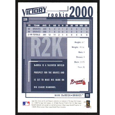 This is a 2000 Upper Deck Victory Mark DeRosa baseball card. The card is #339 and pictures show condition.