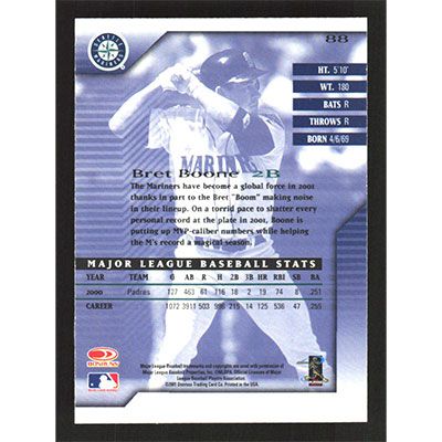 This is a 2001 Donruss Signature Series Bret Boone baseball card. The card is #88 and pictures show condition.