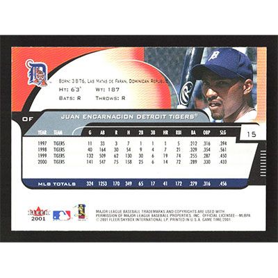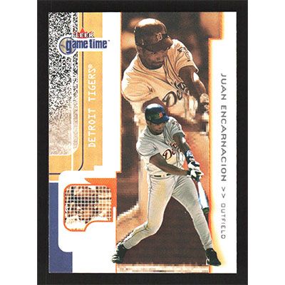This is a 2001 Fleer Game Time Juan Encarnacion baseball card. The card is #15 and pictures show condition.