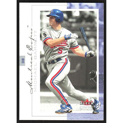 This is a 2001 Fleer Genuine Michael Barrett baseball card. The card is #57 and pictures show condition.