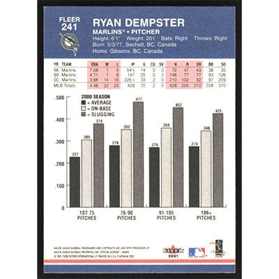 This is a 2001 Fleer Platinum Ryan Dempster baseball card. The card is #241 and pictures show condition.