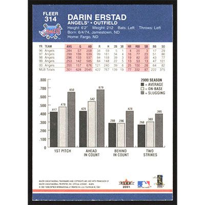 This is a 2001 Fleer Platinum Darin Erstad baseball card. The card is #314 and pictures show condition.