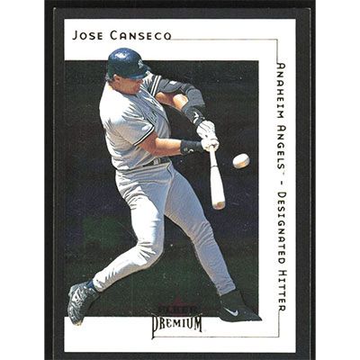 This is a 2001 Fleer Premium Jose Canseco baseball card. The card is #200 and pictures show condition.