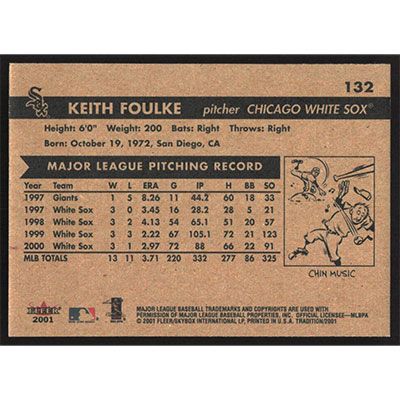 This is a 2001 Fleer Tradition Keith Foulke baseball card. The card is #132 and pictures show condition.