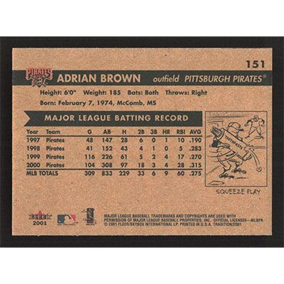 This is a 2001 Fleer Tradition Adrian Brown baseball card. The card is #151 and pictures show condition.