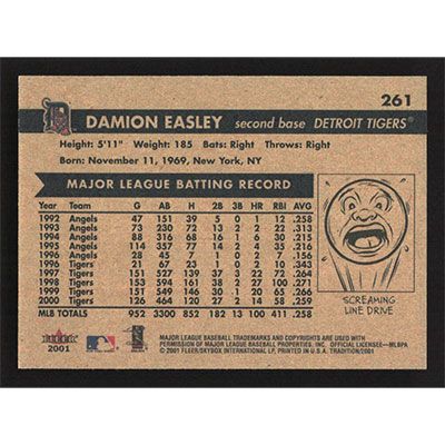 This is a 2001 Fleer Tradition Damion Easley baseball card. The card is #261 and pictures show condition.