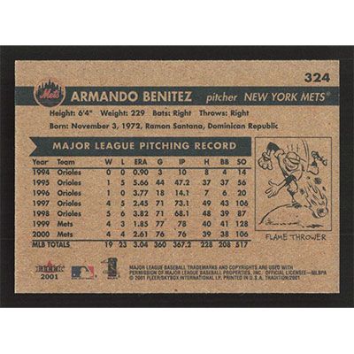 This is a 2001 Fleer Tradition Armando Benitez baseball card. The card is #324 and pictures show condition.
