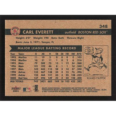 This is a 2001 Fleer Tradition Carl Everett baseball card. The card is #348 and pictures show condition.