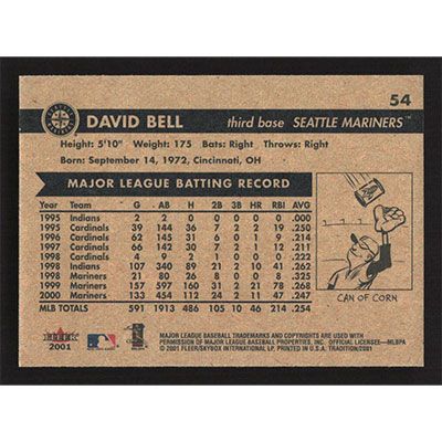 This is a 2001 Fleer Tradition David Bell baseball card. The card is #54 and pictures show condition.