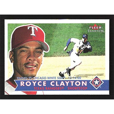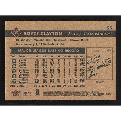 This is a 2001 Fleer Tradition Royce Clayton baseball card. The card is #55 and pictures show condition.