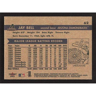 This is a 2001 Fleer Tradition Jay Bell baseball card. The card is #62 and pictures show condition.