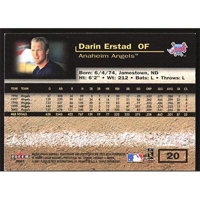 This is a 2001 Fleer Triple Crown Darin Erstad baseball card. The card is #20 and pictures show condition.