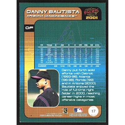 This is a 2001 Pacific Danny Bautista baseball card. The card is #17 and pictures show condition.