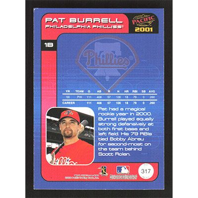 This is a 2001 Pacific Pat Burrell baseball card. The card is #317 and pictures show condition.