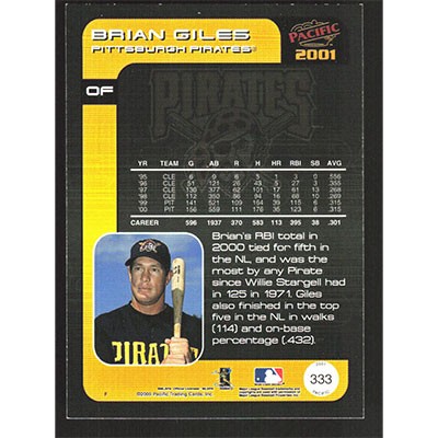 This is a 2001 Pacific Brian Giles baseball card. The card is #333 and pictures show condition.