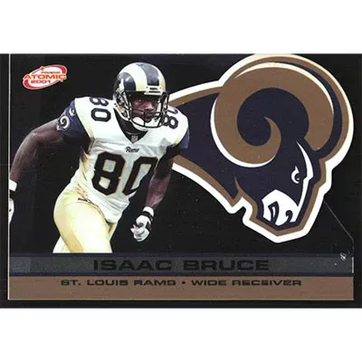 This is a 2001 Pacific Prism Atomic Isaac Bruce football card. The card is #117 and pictures show condition.