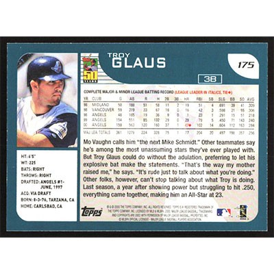 This is a 2001 Topps Troy Glaus baseball card. The card is #175 and pictures show condition.