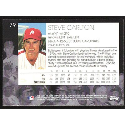 This is a 2001 Topps American Pie Steve Carlton baseball card. The card is #79 and pictures show condition.