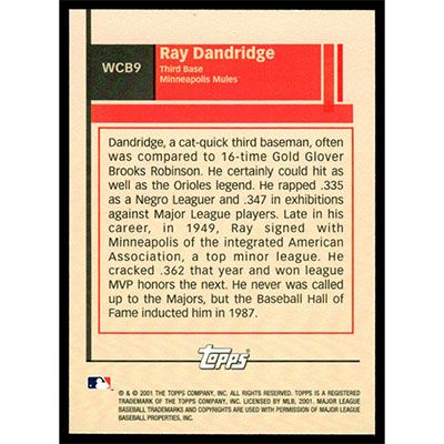 This is a 2001 Topps What Could Have Been Ray Dandridge baseball card. The card is #WCB9 and pictures show condition.