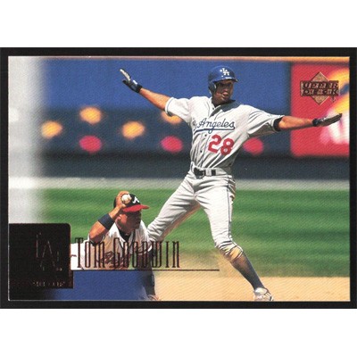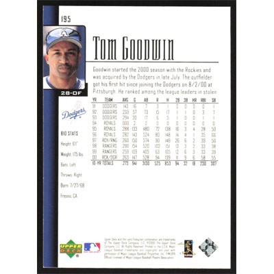 This is a 2001 Upper Deck Tom Goodwin baseball card. The card is #195 and pictures show condition.