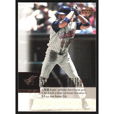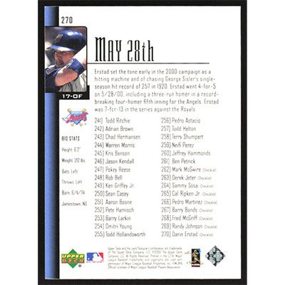 This is a 2001 Upper Deck Darin Erstad Season Highlights Checklist baseball card. The card is #270 and pictures show condition.