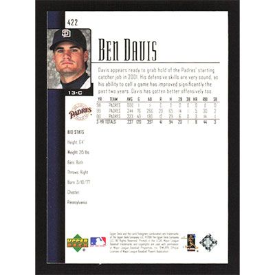 This is a 2001 Upper Deck Ben Davis baseball card. The card is #422 and pictures show condition.