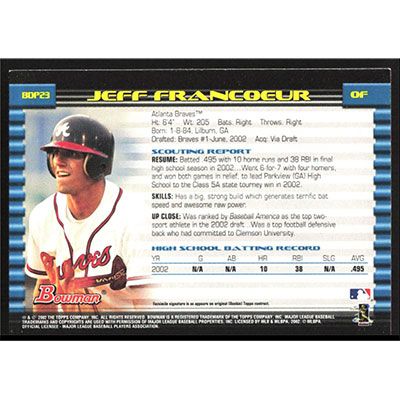 This is a 2002 Bowman Draft Jeff Francoeur baseball card. The card is #BDP23 and pictures show condition.
