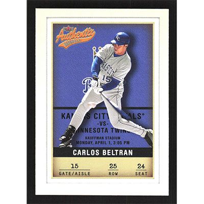 This is a 2002 Fleer Authentix Carlos Beltran baseball card. The card is #25 and pictures show condition.