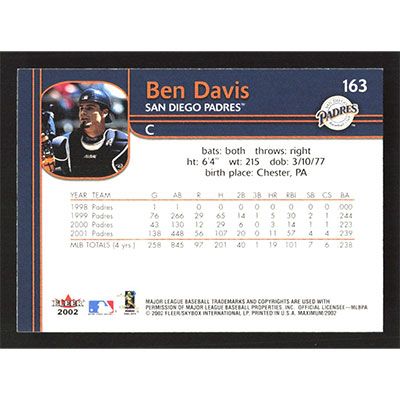 This is a 2002 Fleer Maximum Ben Davis baseball card. The card is #163 and pictures show condition.