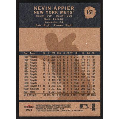This is a 2002 Fleer Tradition Kevin Appier baseball card. The card is #151 and pictures show condition.