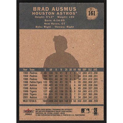 This is a 2002 Fleer Tradition Brad Ausmus baseball card. The card is #161 and pictures show condition.