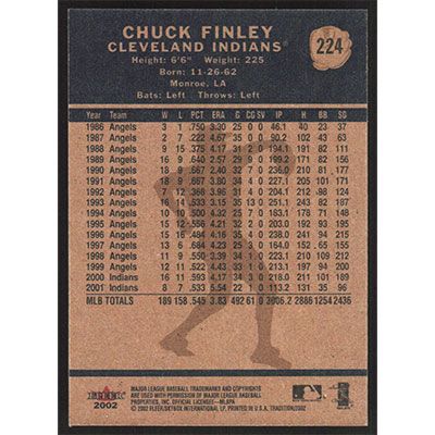 This is a 2002 Fleer Tradition Chuck Finley baseball card. The card is #224 and pictures show condition.