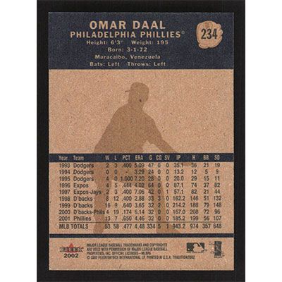 This is a 2002 Fleer Tradition Omar Daal baseball card. The card is #234 and pictures show condition.