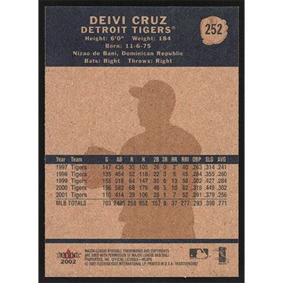 This is a 2002 Fleer Tradition Deivi Cruz baseball card. The card is #252 and pictures show condition.