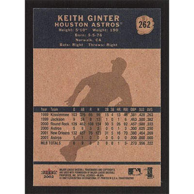 This is a 2002 Fleer Tradition Keith Ginter baseball card. The card is #262 and pictures show condition.