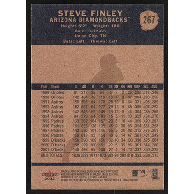 This is a 2002 Fleer Tradition Steve Finley baseball card. The card is #267 and pictures show condition.