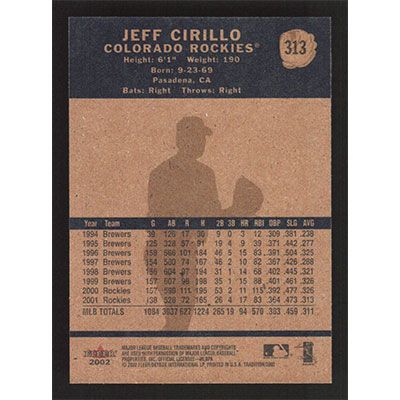 This is a 2002 Fleer Tradition Jeff Cirillo baseball card. The card is #313 and pictures show condition.