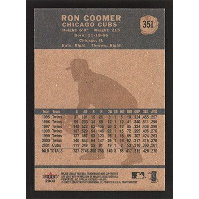 This is a 2002 Fleer Tradition Ron Coomer baseball card. The card is #351 and pictures show condition.