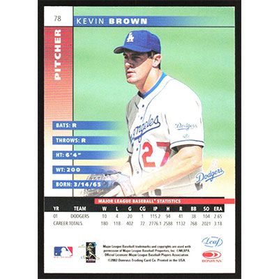 This is a 2002 Leaf Kevin Brown baseball card. The card is #78 and pictures show condition.