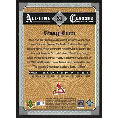 This is a 2002 Sweet Spot Classics Dizzy Dean baseball card. The card is #81 and pictures show condition.
