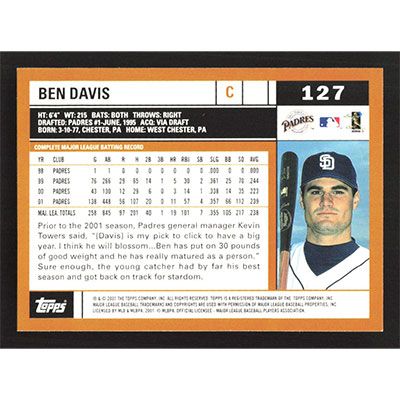 This is a 2002 Topps Ben Davis baseball card. The card is #127 and pictures show condition.