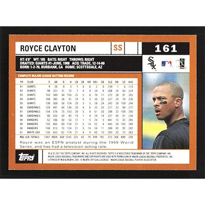 This is a 2002 Topps Royce Clayton baseball card. The card is #161 and pictures show condition.