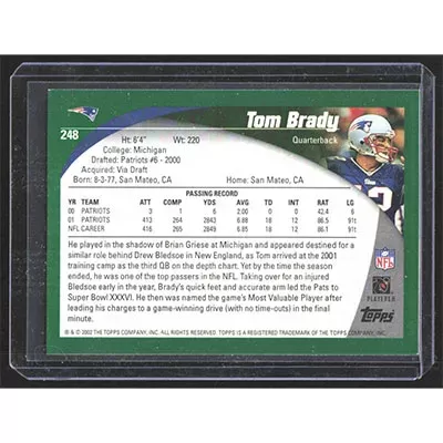 This is a 2002 Topps Tom Brady football card. The card is #248 and pictures show condition.
