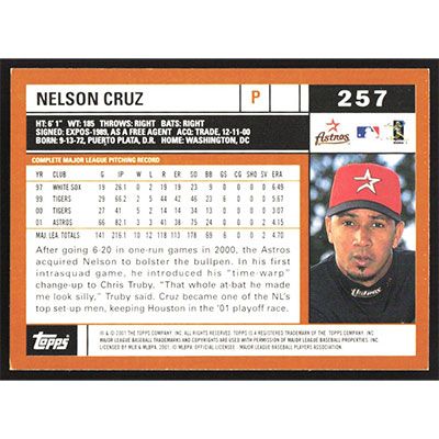 This is a 2002 Topps Nelson Cruz baseball card. The card is #257 and pictures show condition.